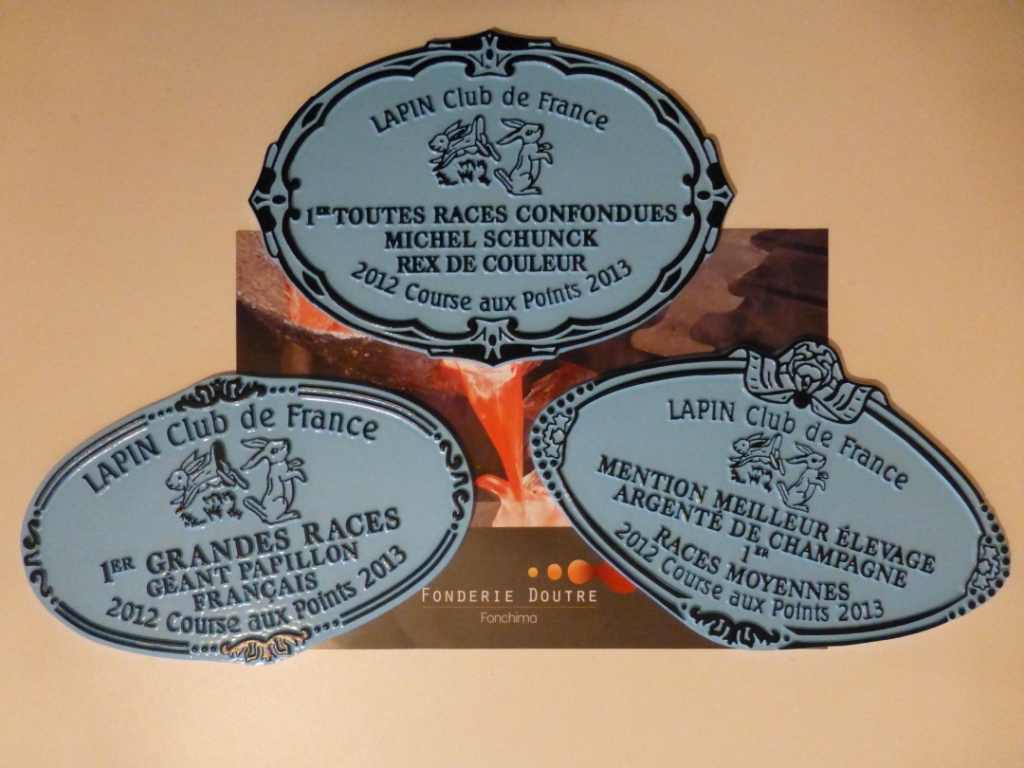Le Lapin Club de France a envoyé aux lauréats de la saison 2012-2013 les plaques correspondantes aux résultats suivants: